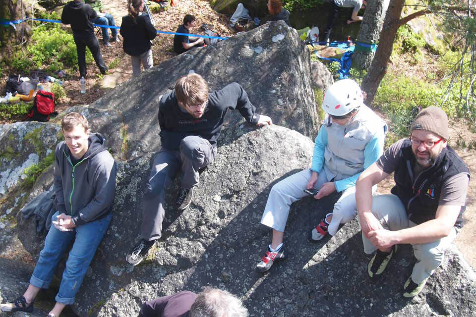 Dimanche 23 avril. 9h. Parking des Roches de la Moulure. Benoît nous attend depuis… ah, il a déjà fait 3 voyages. Crash-pad. Réchaud. Café. Jerrycan d’eau. Slackline. Benoît est un véritable couteau suisse. Je ne lui demanderai confirmation que le soir, pour la forme, mais je suis certain qu’il a avec lui la trousse de…